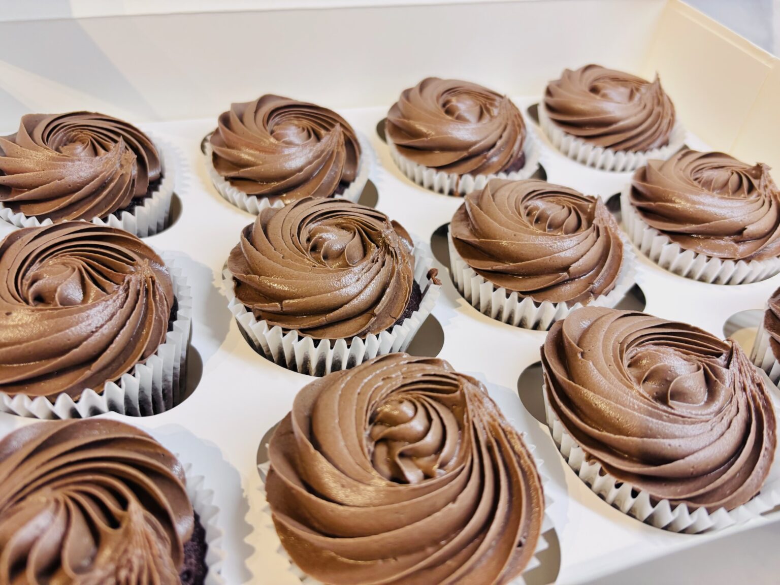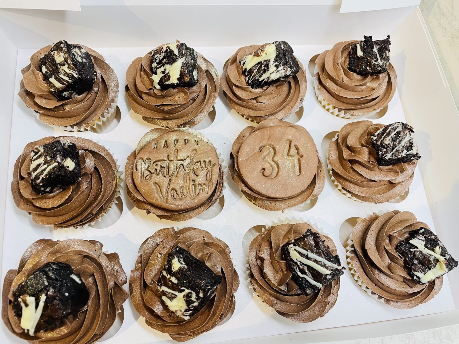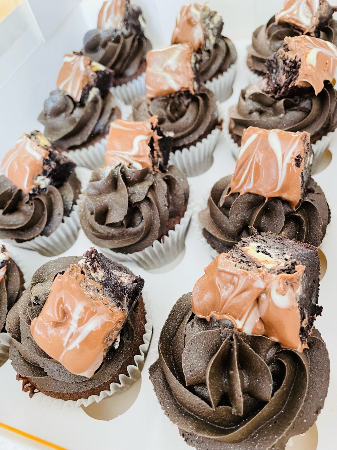 A delightful box of twelve rich chocolate cupcakes, each topped with smooth, velvety chocolate buttercream. Perfect for sharing, gifting, or treating yourself to a deliciously indulgent treat. For extra toppings like brownies/chocolates please add extras from the option on the cupcake page.