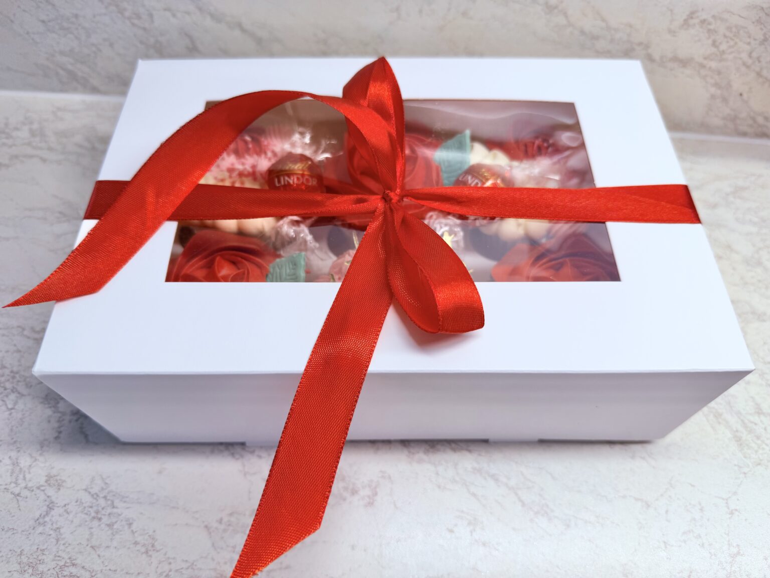 Celebrate love in the sweetest way with our Valentine’s Cupcake Box. This beautifully curated box features 6 soft vanilla cupcakes, including 3 elegant red rose–designed cupcakes for a romantic touch. Nestled alongside are 2 Lindt Lindor chocolates, adding a hint of indulgent luxury. Finished with a shiny “Happy Valentine’s Day” gold topper, this box is […]