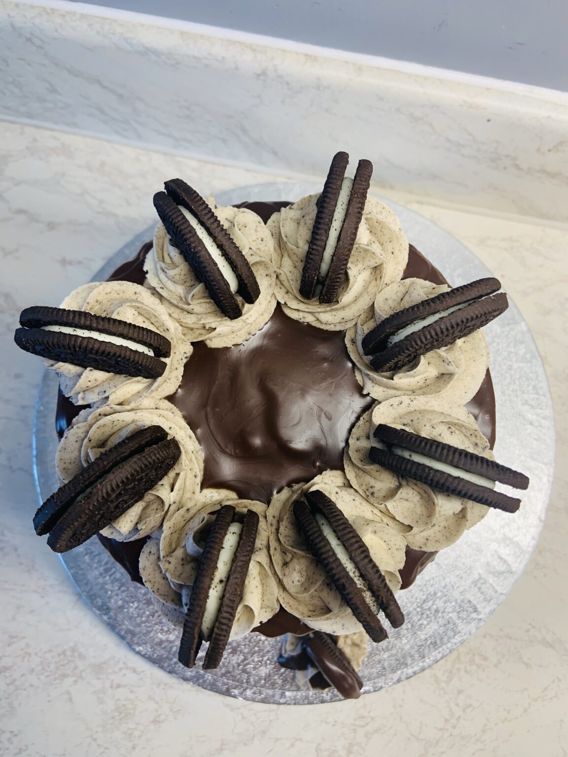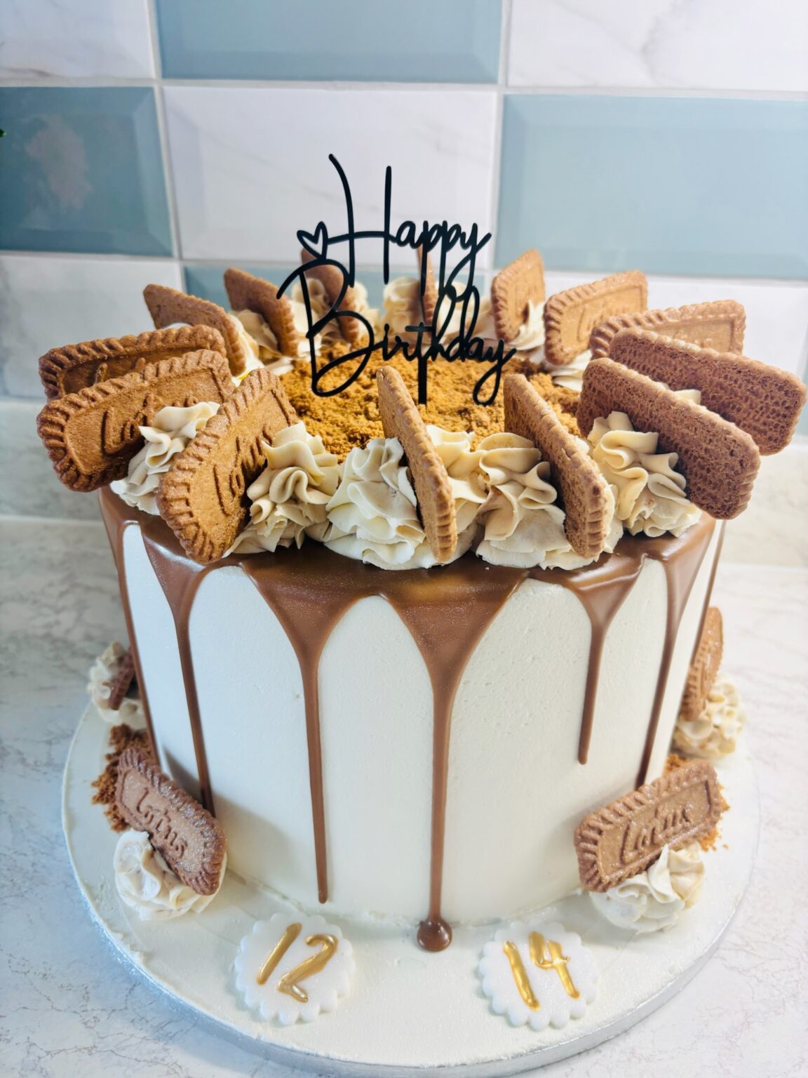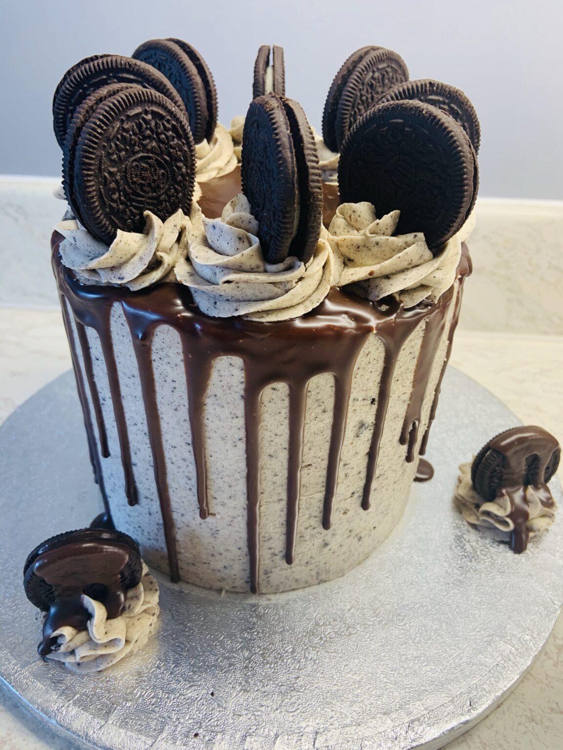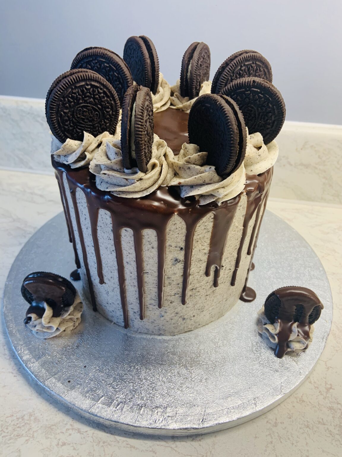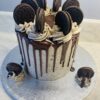 Vanilla sponge filled with Oreo buttercream, covered in Oreo buttercream icing, finished with milk-chocolate drips and Oreo biscuits.The topper can read something like “Happy 50th” or “Happy 50th Birthday Jane.” Choose from the options below, and if you have any extra requests, please leave a note at checkout.