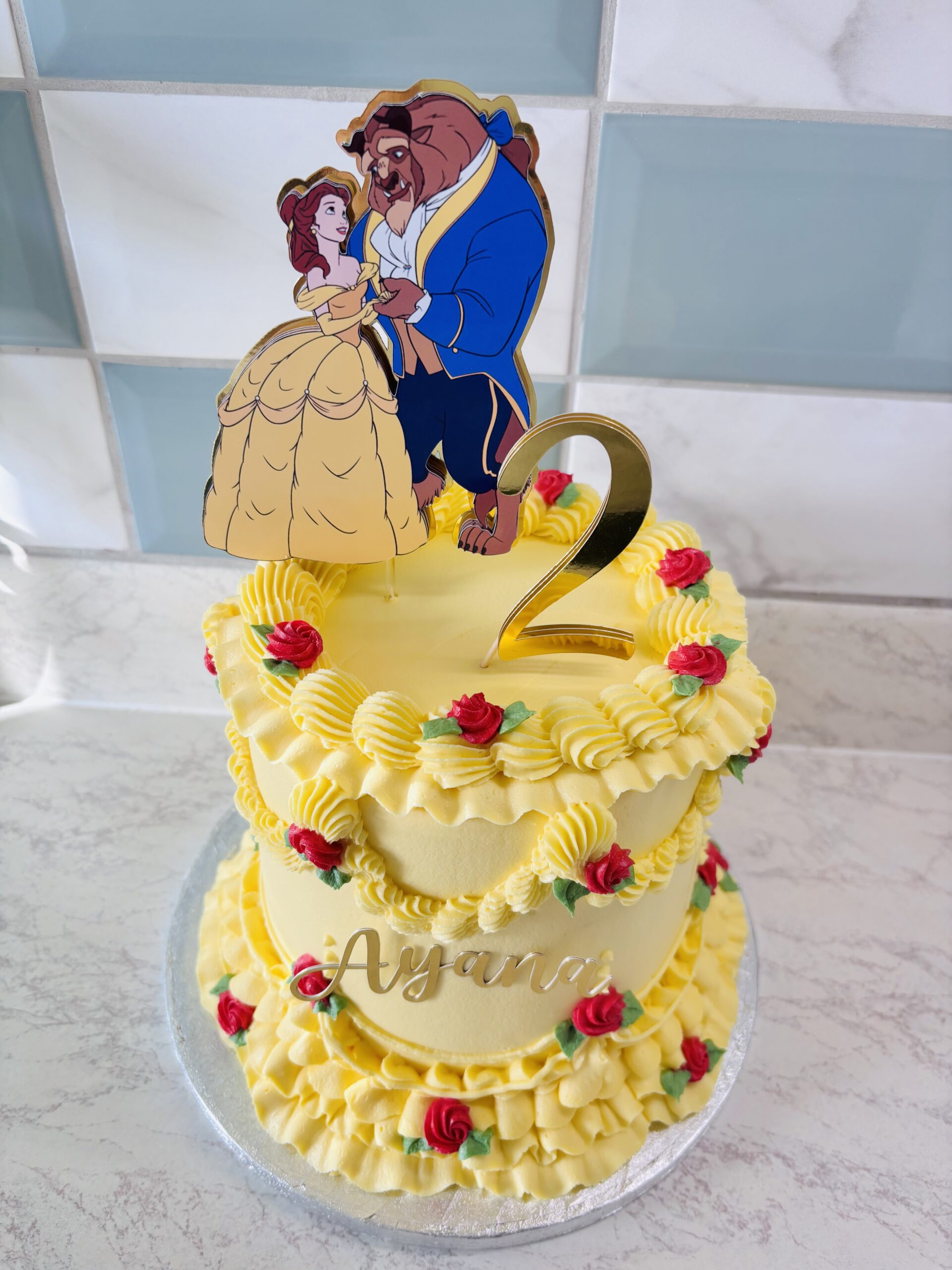 Topped with a charming Belle and Beast topper, this cake is perfect for princess birthdays, fairy-tale celebrations, or anyone who loves a classic happily-ever-after moment.