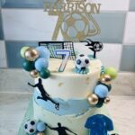 Featuring mini non-edible footballs and balls, striking player and goal silhouettes, and a football shirt topper from your favourite club, this cake is a winning centrepiece for birthdays and celebrations.